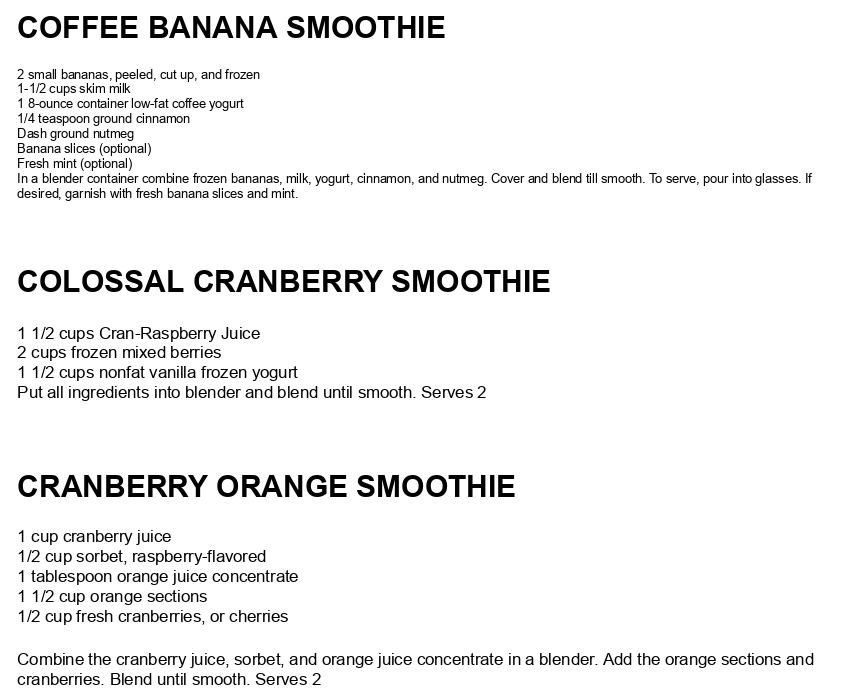 204 Smoothie Recipes Formatted in a Printable Document, No Fluff, No Hustle