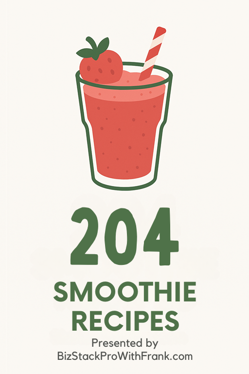 The ONLY Smoothie Recipe Book You Ever Need! Get 204 Smoothie Recipes in ONE Document! Stop Wasting Hours Searching. Grab the "204 Smoothie Recipes - Presented by BizStackProWithFrank.com" TODAY.